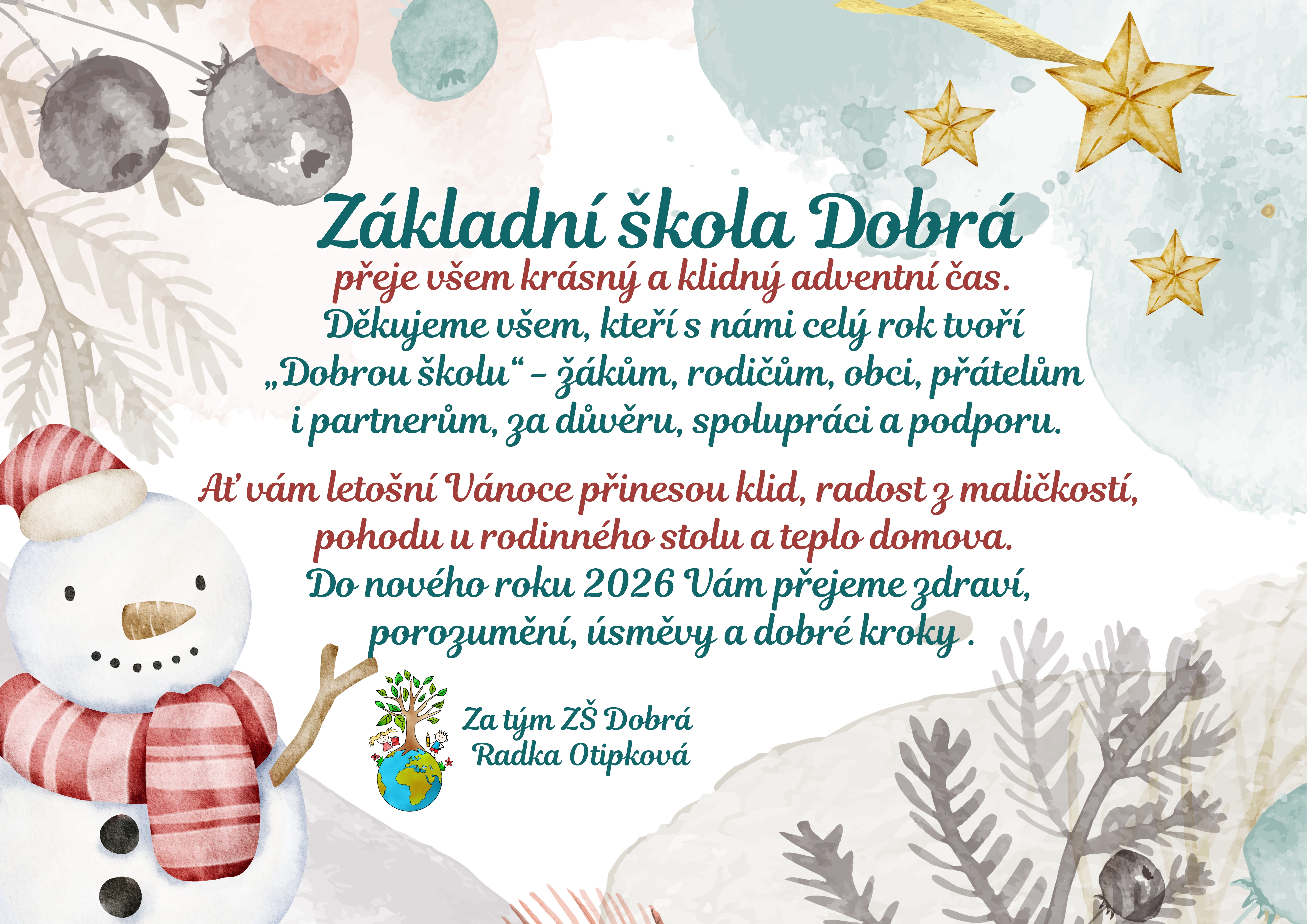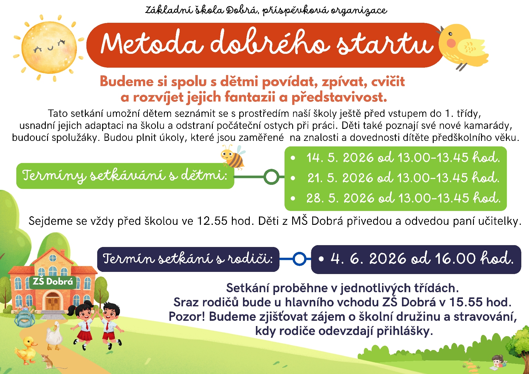 Základní škola Dobrá, příspěvková organizace je úplná základní škola s devíti ročníky a člení se na 1. a 2. stupeň. Škola je zároveň školou spádovou, na 1. stupni pro žáky z obce Pazderna a na 2. stupni pro žáky z obcí Dobratice, Nošovice, Nižní Lhoty a Vojkovice. Naše školička se nachází v centru obce Dobrá (podhůří Beskyd). Obec Dobrá leží v blízkosti okresního města Frýdek-Místek.